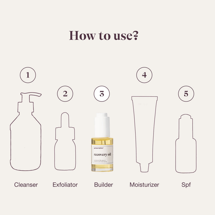 Pro tip: meng 4 druppels Recovery Oil met 3 druppels Ascorbic Acid. Vitamine E en C versterken elkaars werking en bieden samen krachtige bescherming tegen vrije radicalen en vroegtijdige huidveroudering.