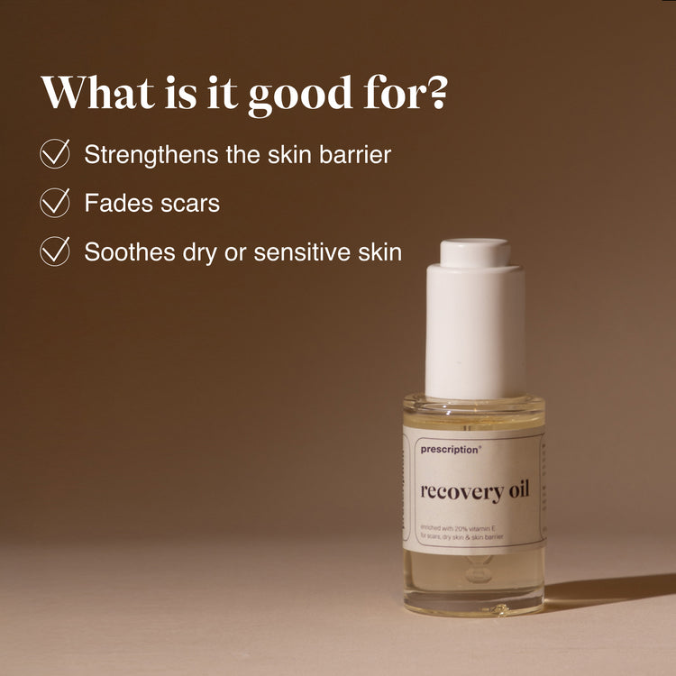 De Recovery Oil bevat vitamine E, een krachtige antioxidant die de huid beschermt tegen vrije radicalen, littekenherstel ondersteunt en de huidbarrière versterkt. Daarnaast is de olie verrijkt met plantaardige oliën die de huid intensief voeden en kalmeren.